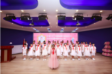 会议开始前,彩虹多多集团为参会的中关村二小学生带来了礼物,孩子们在翻阅中如同找到知己一般,喜悦溢于言表,因为她们看到了可爱的爱心大使元七七同学。当嘹亮的歌声响起,学生代表们在国旗下歌唱、宣言,散发出阵阵青春朝气,也预示着发布会开始。